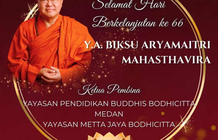 Selamat hari berkelanjutan ke-66 Y.A. Biksu Aryamaitri Mahasthavira (Ketua Pembina Yayasan Pendidikan Buddhis Bodhicitta Medan dan Yayasan Metta Jaya Bodhicitta)